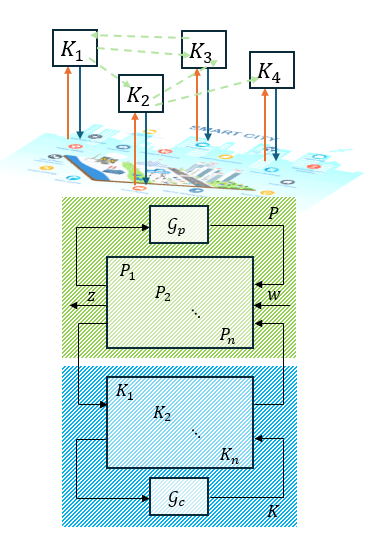 Study how to design multiple controllers cooperating by communication over a network to better regulate a networked plant.